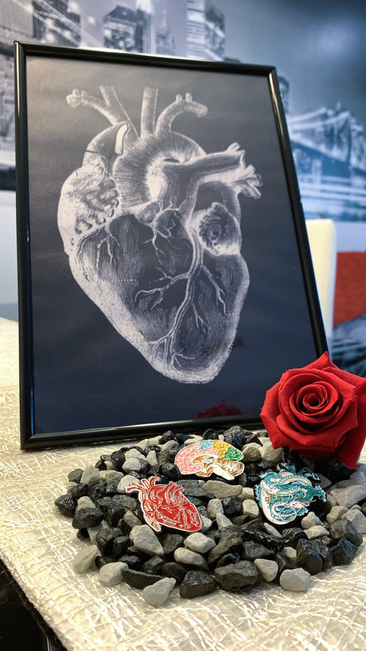 Set Vintage del Corazón Anatómico + 3 Pins de Corazón | Anatomical Heart Art & Pins 1:1 Limited Edition