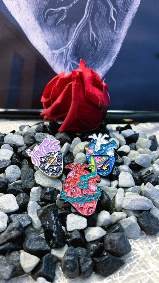 Set de 3 Pins Góticos de Corazón | Gothic Anatomical Heart Pin Set 1:1 Limited Edition