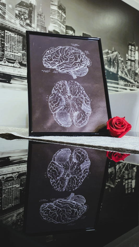 Póster Vintage de Anatomía Cerebral con Marco – Arte Médico Elegante para Doctores, Enfermeras & Estudiantes | Regalo Único de Neurociencia