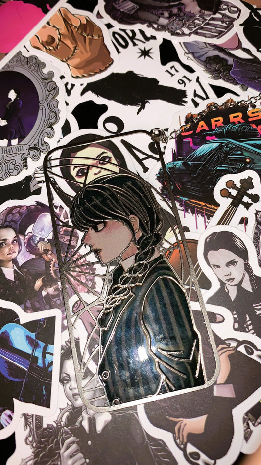 📖 Marcapáginas Metálico “Wednesday Noir” | Wednesday Gothic Metal Bookmark + Hand Charm 🕸️ | Dark Anatomy Halloween Edition | Limited 1:1