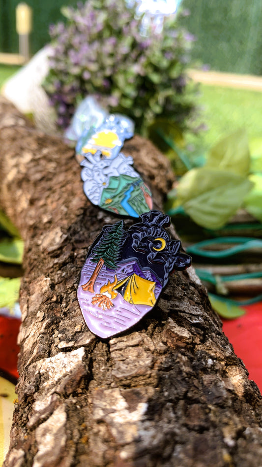 Set de Pins Aventura de Camping (3 piezas) – Hoguera Nocturna, Montaña & Río, Furgoneta Camper | Regalo para Amantes de la Naturaleza, Excursionistas y Vanlife