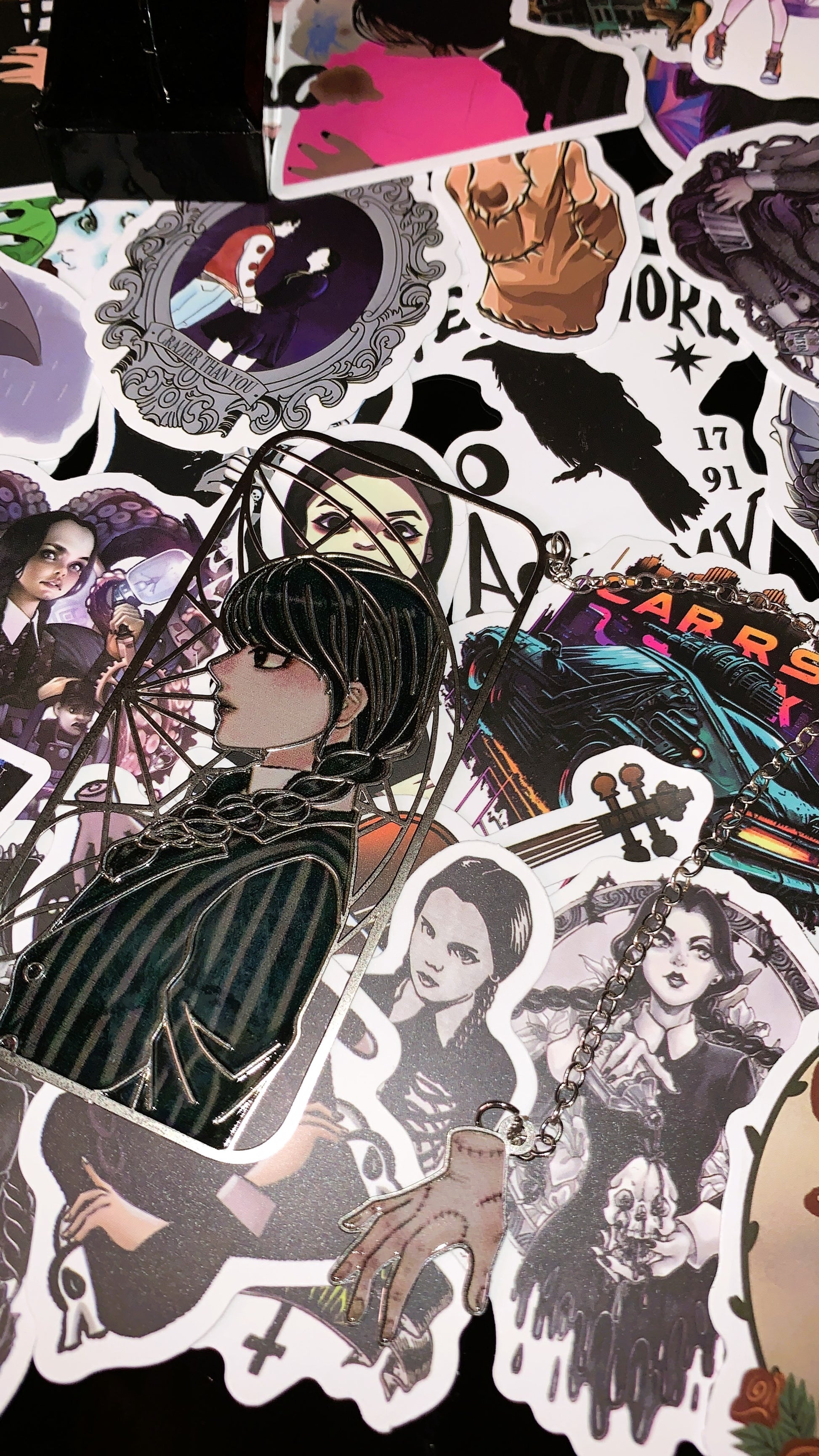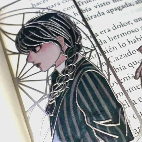 📖 Marcapáginas Metálico “Wednesday Noir” | Wednesday Gothic Metal Bookmark + Hand Charm 🕸️ | Dark Anatomy Halloween Edition | Limited 1:1