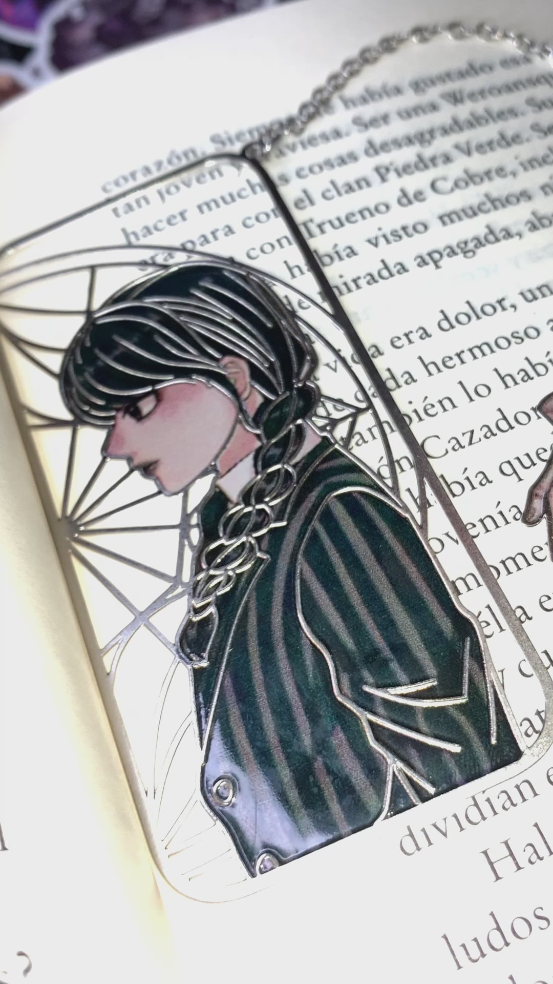 El Marcapáginas Metálico “Wednesday Noir” – Edición Limitada 1:1 captura la esencia gótica y misteriosa de Wednesday en una pieza elegante, minimalista y atemporal.