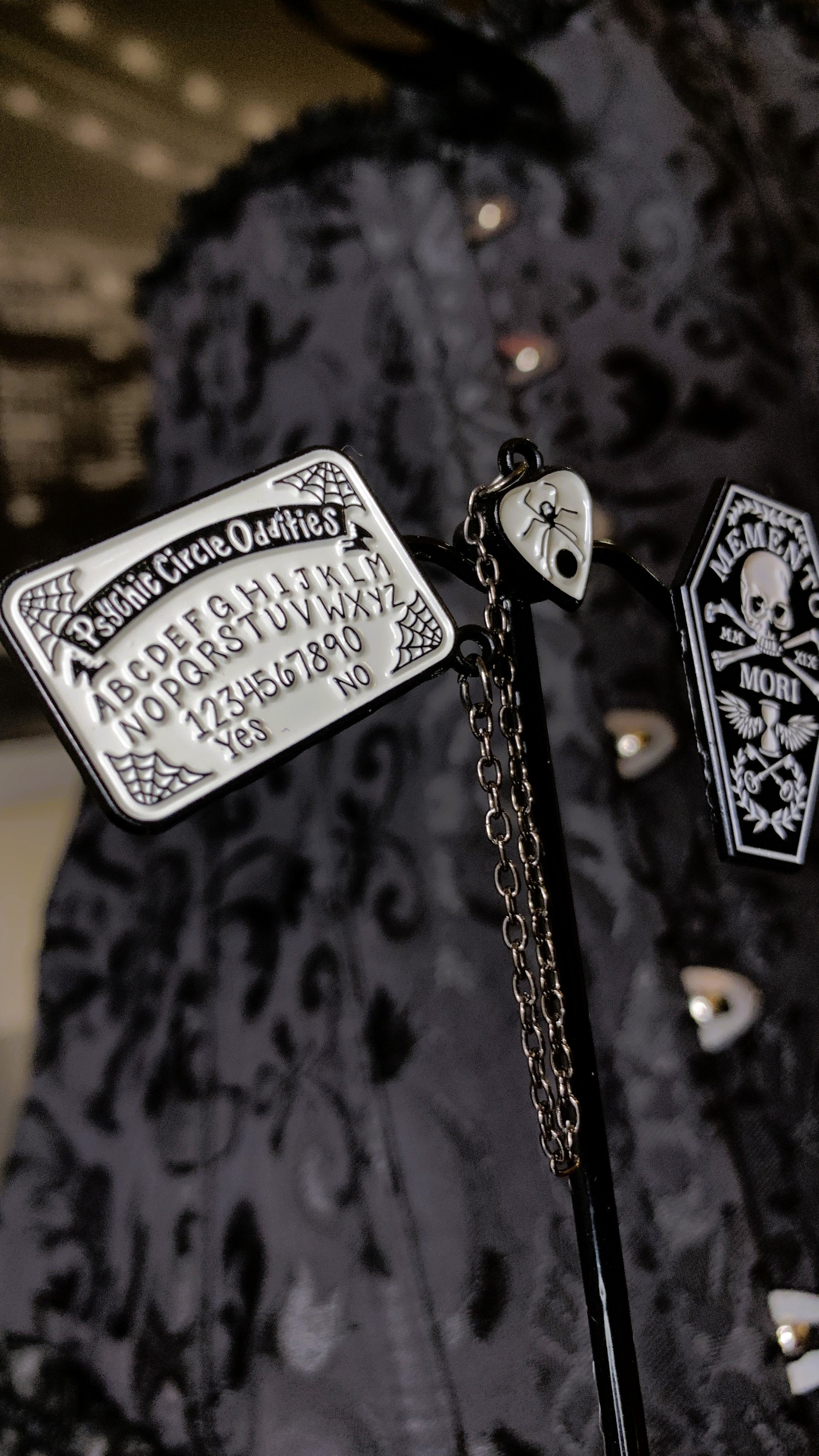 🔮 Set “Memento & Ouija” | 2 Gothic Enamel Pins – Ouija Board + Coffin Design ⚰️ | Dark Anatomy Halloween Edition | Limited 1:1