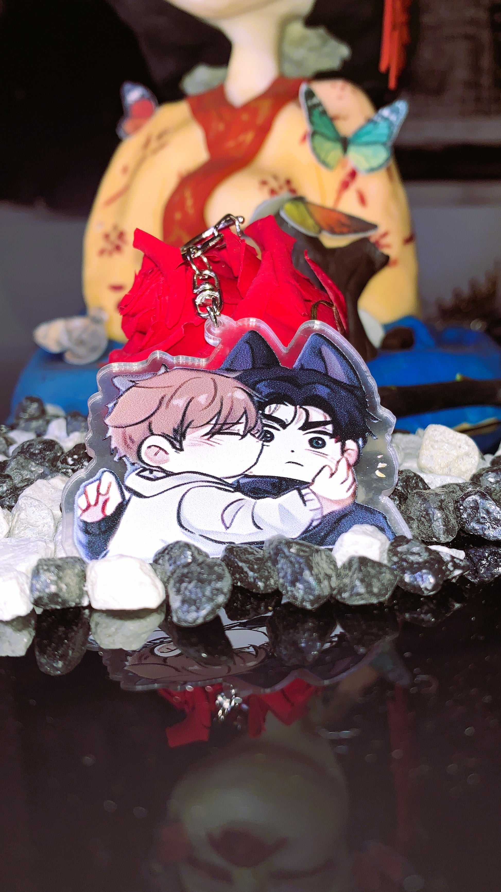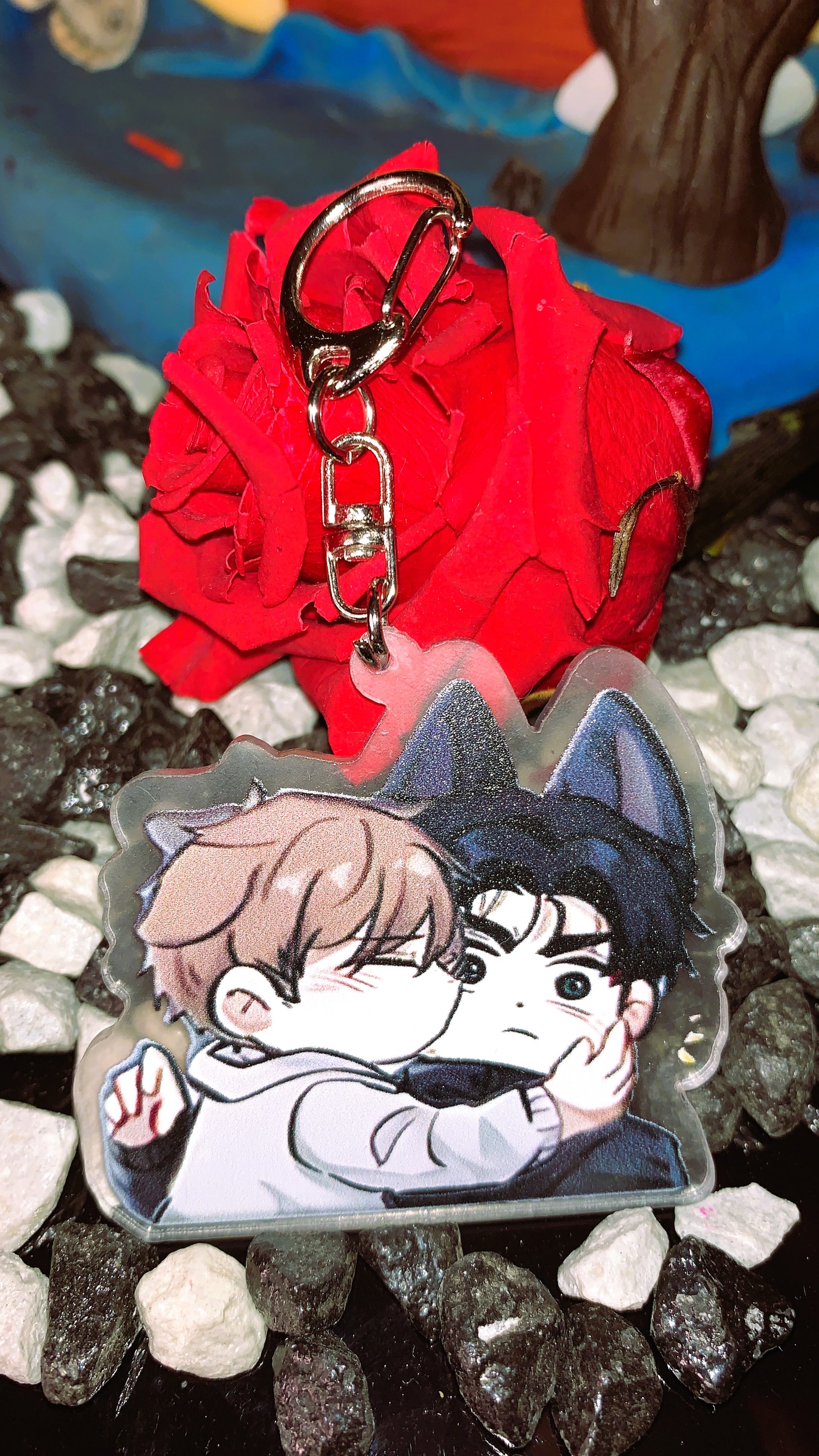Este llavero acrílico de edición especial captura uno de los momentos más adorables y caóticos entre Kim Dan y Joo Jaekyung, transformados en estilo chibi con orejitas y expresión ultra cute que enamora al instante.