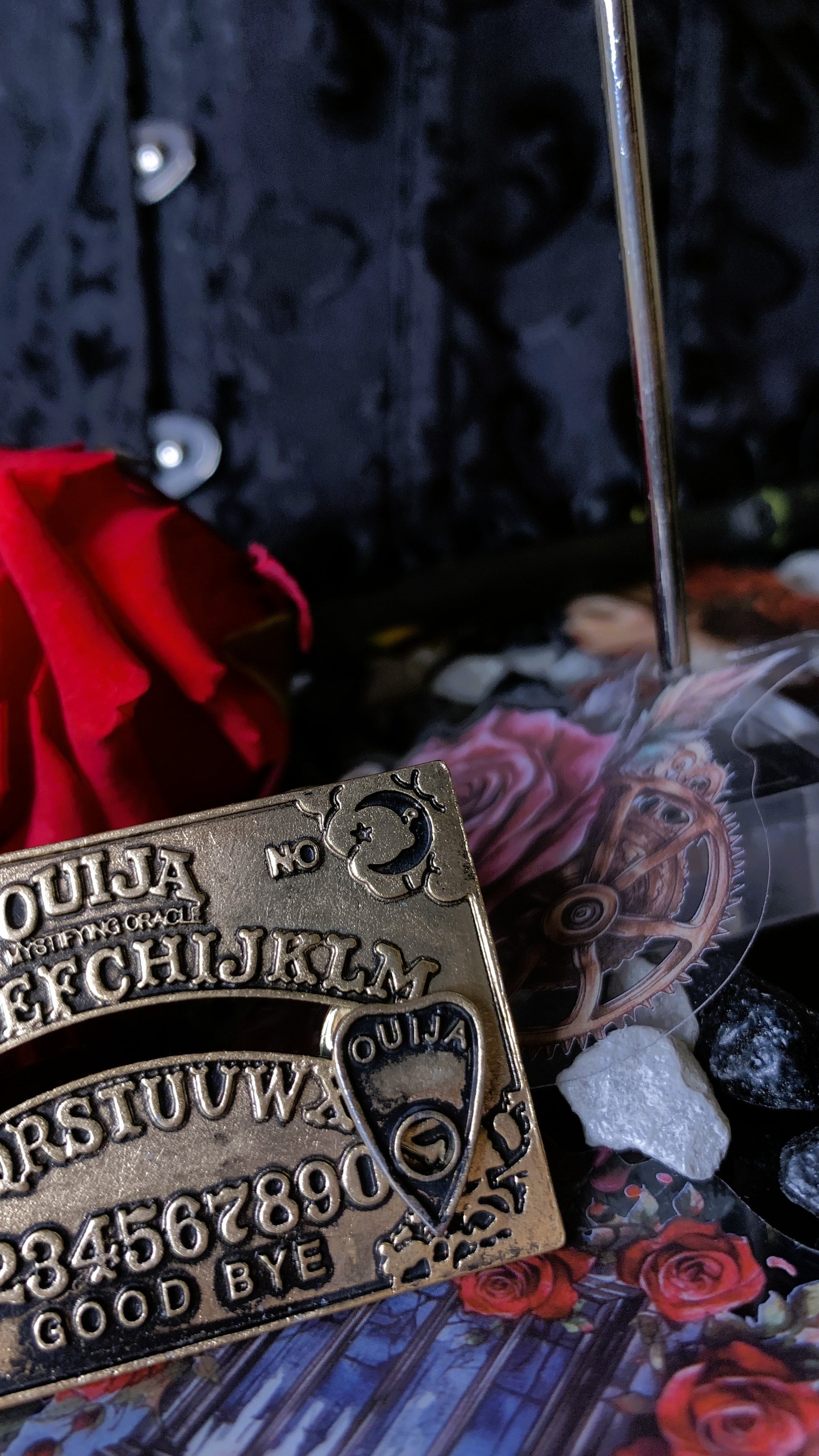 • Diseño exclusivo de tabla Ouija gótica con relieve dorado envejecido ✨