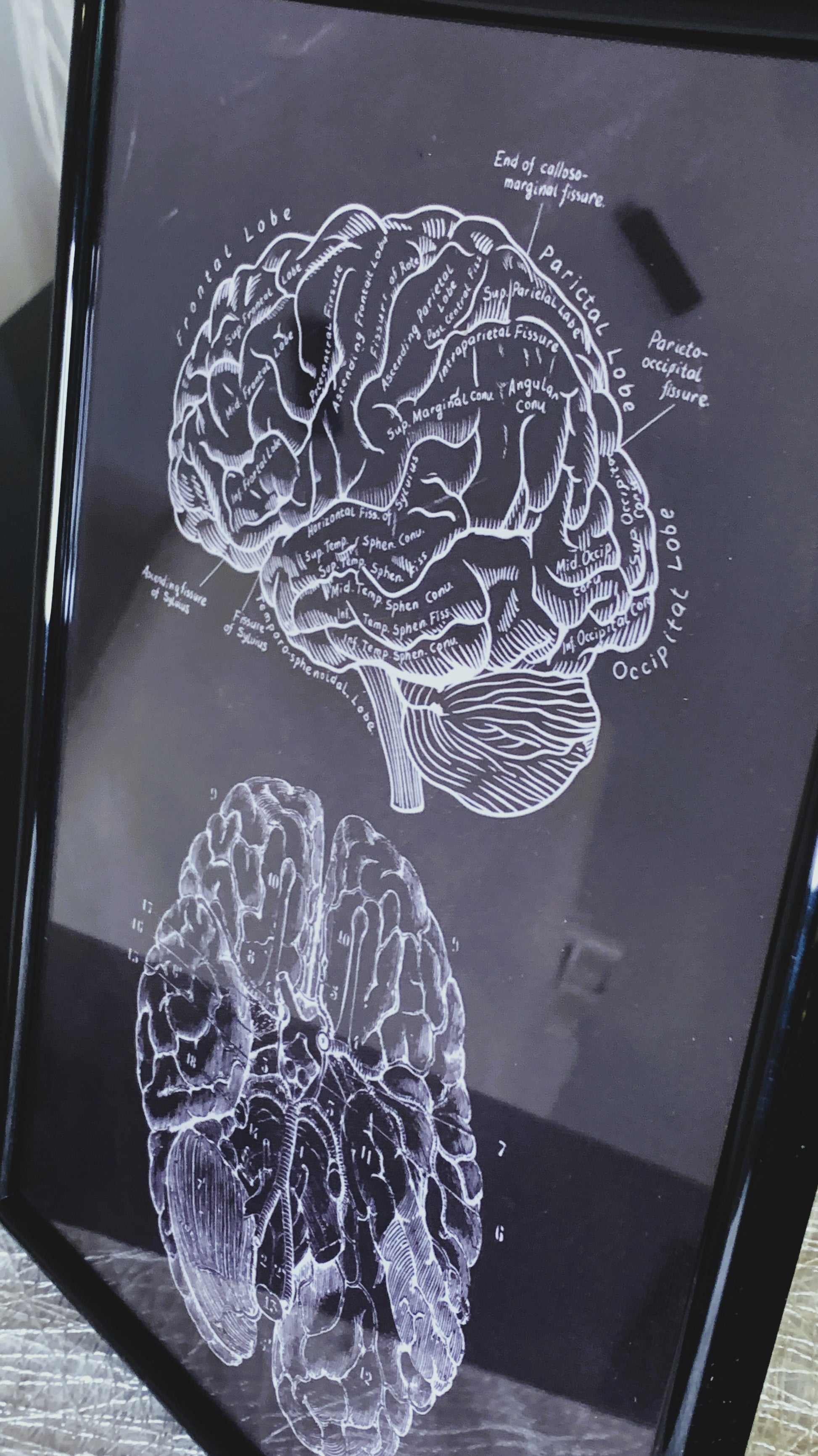 🖼️✨ Póster Cerebro en Marco (21x30 cm) – Ilustración vintage de estructuras cerebrales, lista para colgar en tu estudio, oficina o clínica.
