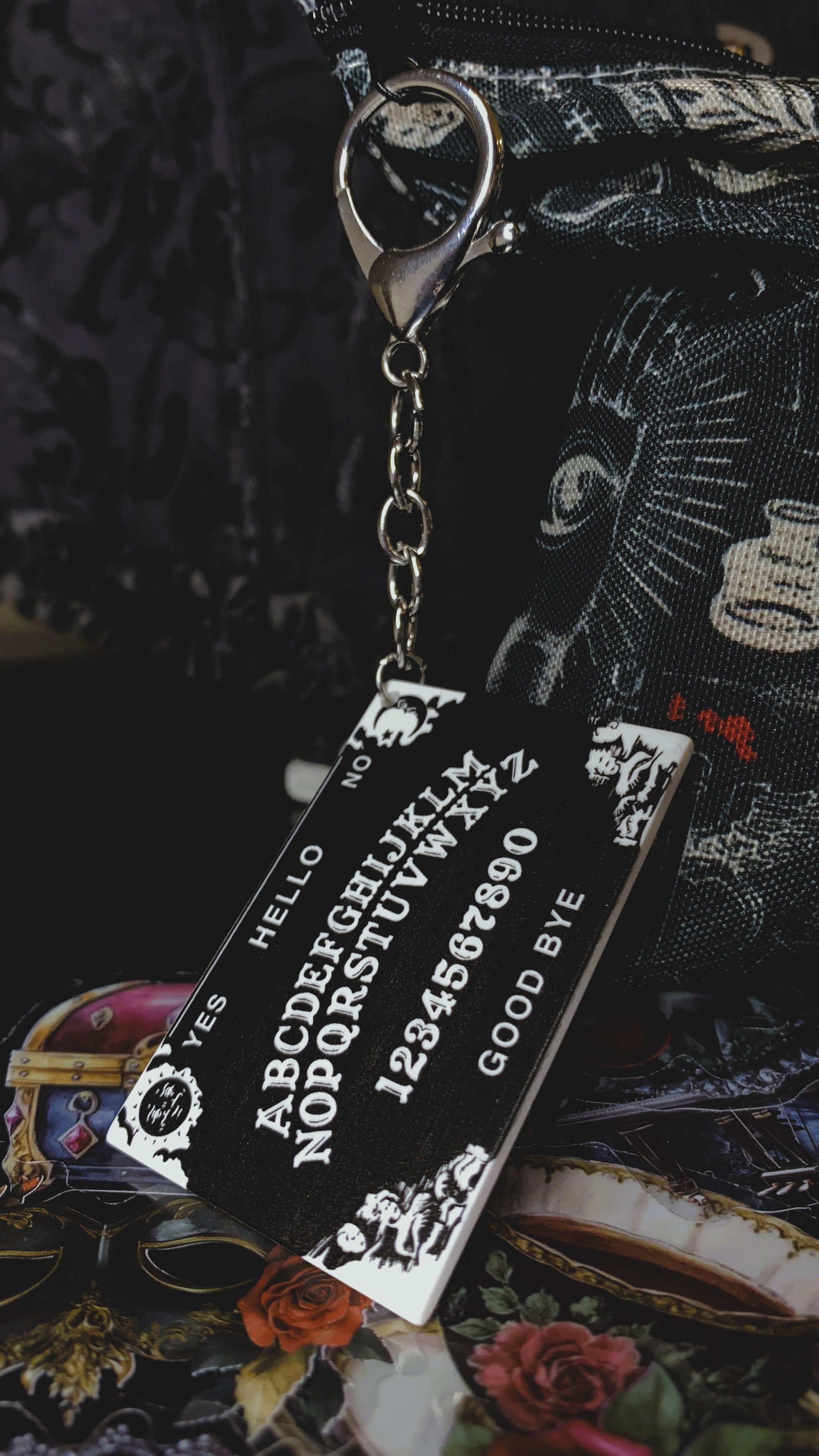 Su cierre único con diseño de tablero Ouija convierte este accesorio en un símbolo de conexión entre el arte, lo oculto y la elegancia.