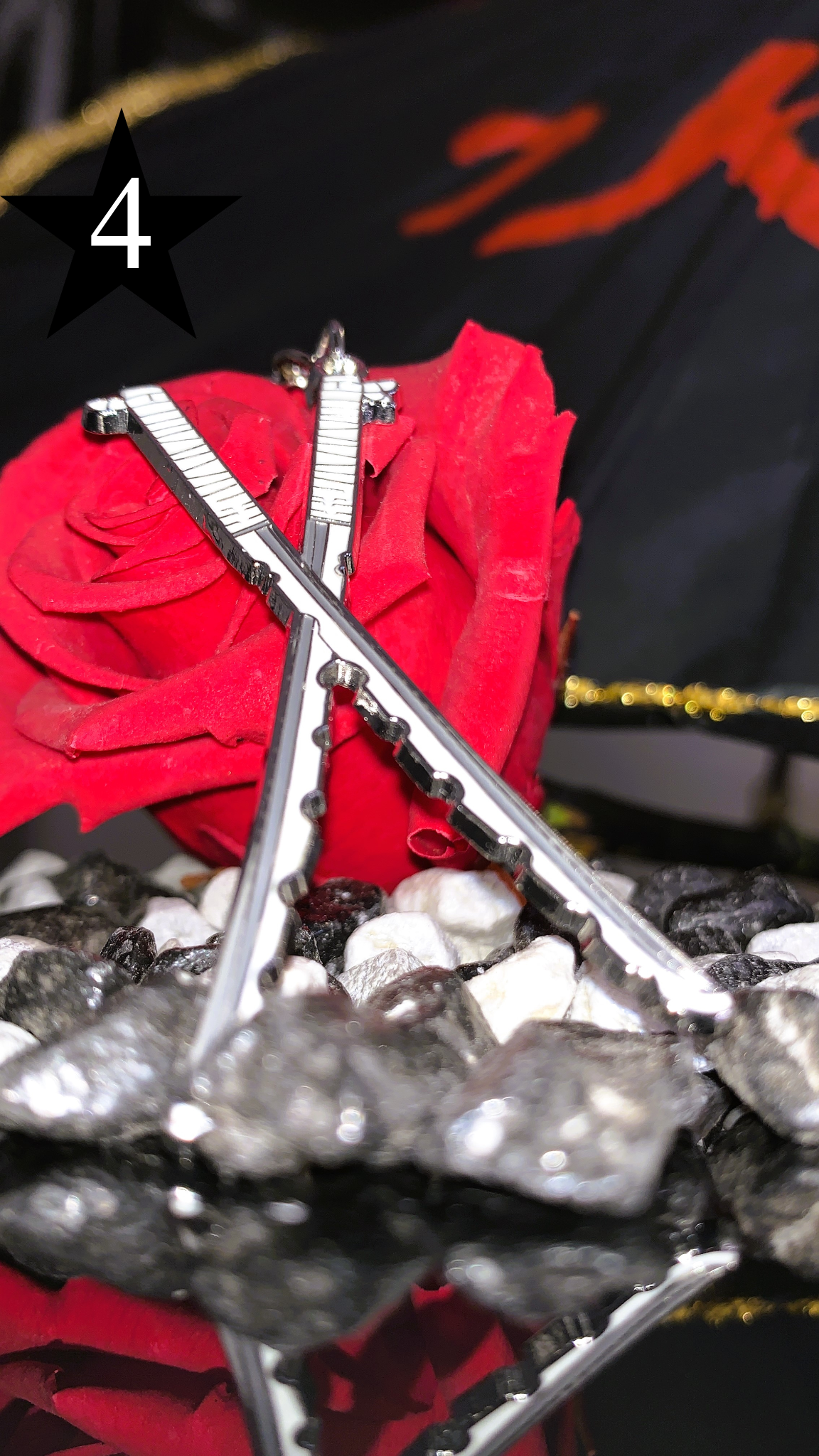 • El pack incluye: 8 piezas (4 tags bordados + 4 mini katanas) 🛍️