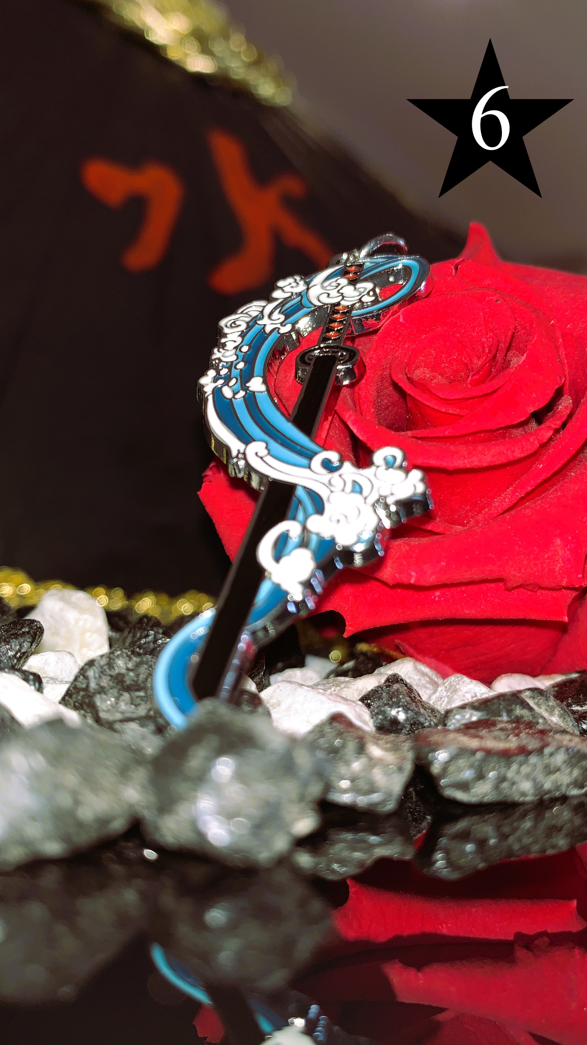 • Materiales: Aleación metálica ⚔️, esmalte de alta calidad 🎨, tela bordada 🌸, anillo de acero inoxidable 🔒