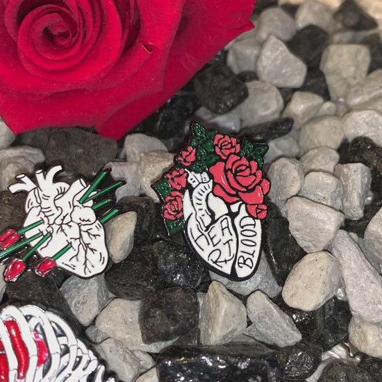 ✔️ Heart & Blood Pin – Diseño con rosas rojas y negras, símbolo del arte anatómico gótico 🖤