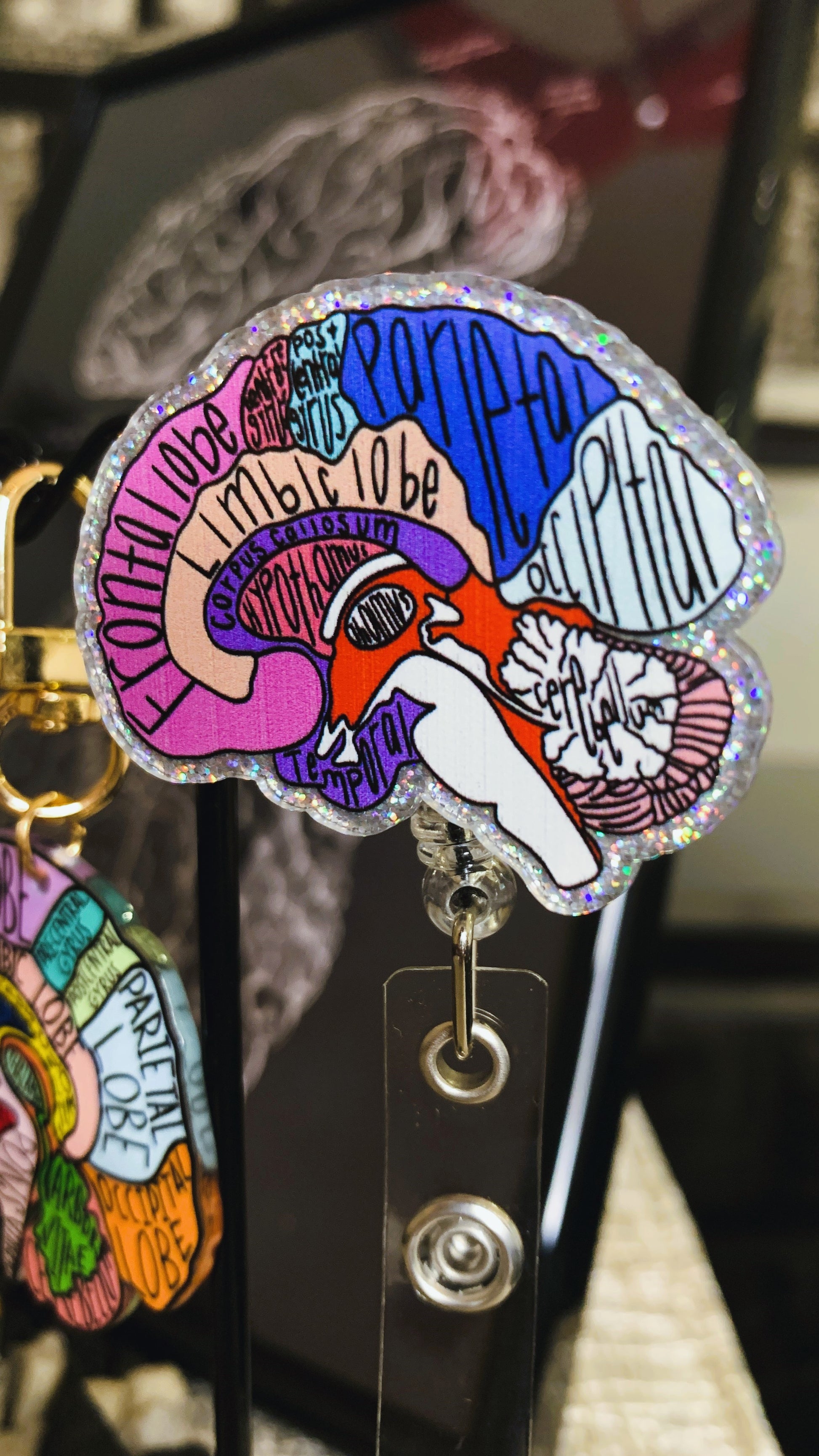 Set de Lujo Anatomía Cerebral – Edición Limitada (1/1) | Porta-Credencial Retráctil, Llavero, Póster en Marco & 3 Pins Esmaltados