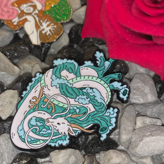 🐉 Maxi Pin Dragón Marino en Corazón – Dragón japonés mítico fluyendo dentro de un corazón anatómico, fusión de medicina, océano & cultura 🌊🐉